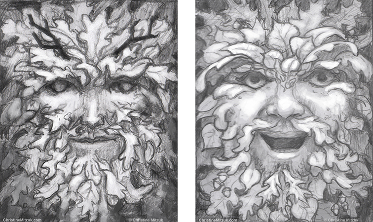 Here’s a bit on the process for the Autumn Green Man.