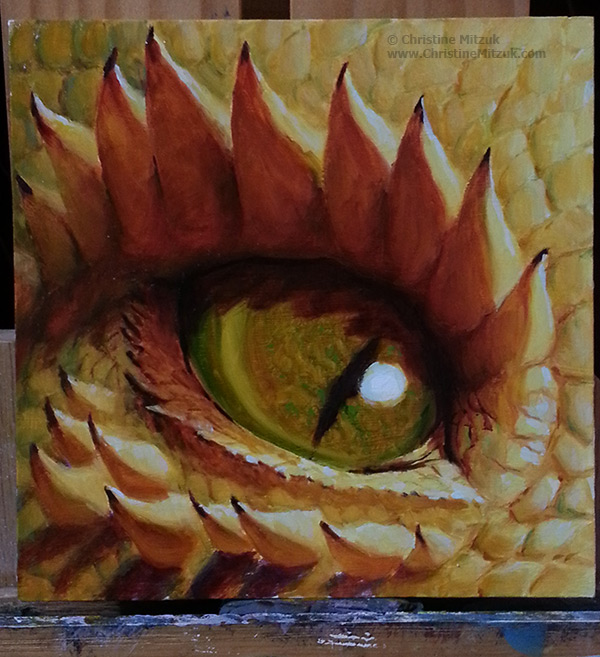 New oil painting on the easel! Here’s a shot of the work in progress. I decided to play with the yellow color family with this one. I’m looking at the changing autumn leaves for some inspiration. 6″x6″ oil on prepared board.