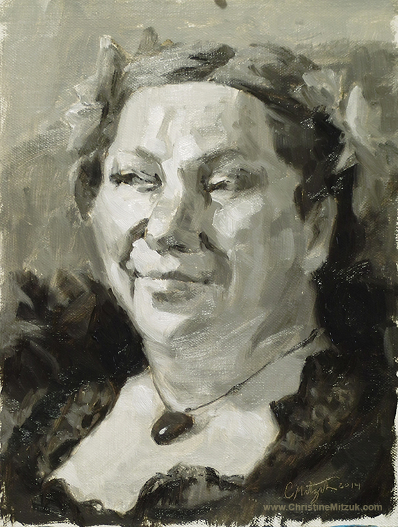 This model had very lively facial expressions but she was also incredibly wiggly. It was tricky but this was a fun painting session. I think her antics allowed me to capture quite a lot of her character.