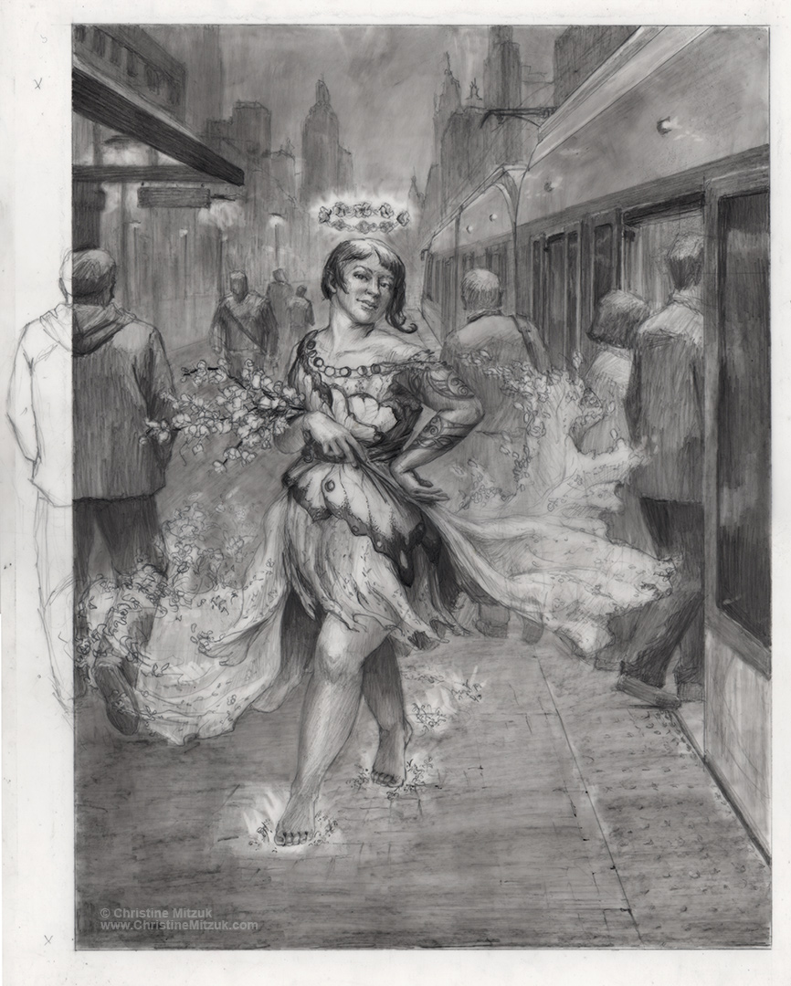 I’m excited to show you The May Queen (this is the piece I posted about last week). She is a companion piece to Jack in the Green and prints of both are available through my online store. Both original paintings will be at my IlluXCon Showcase table this coming Friday, October 20th (8 p.m. to MIDNIGHT) and Saturday, October 21st (6 p.m. to 10 p.m.). IlluXCon is being held in Reading, PA. Learn more on their site.