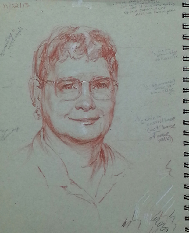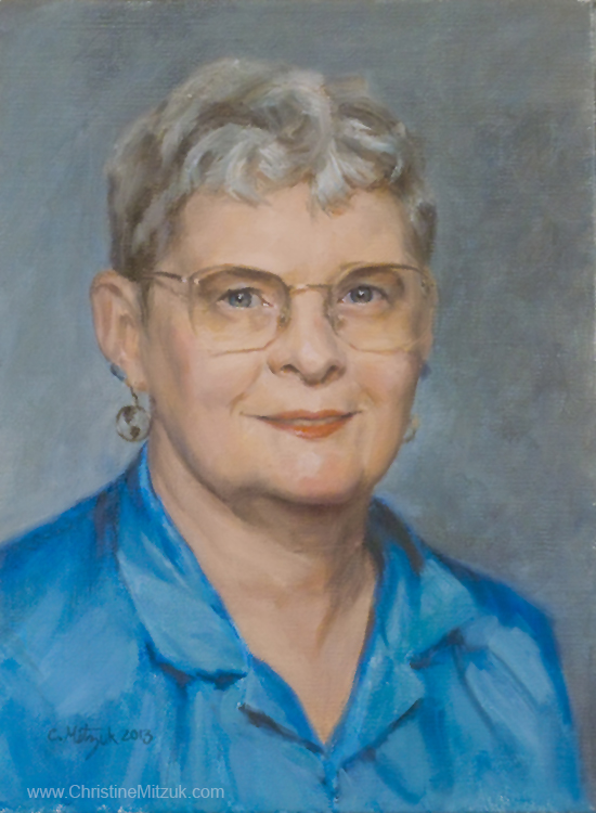 As a present for my husband, I painted a posthumous portrait of his mother. Kinda tricky. I had to work from photos, and my memories and impressions of her.