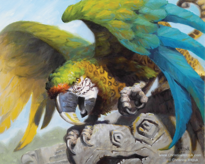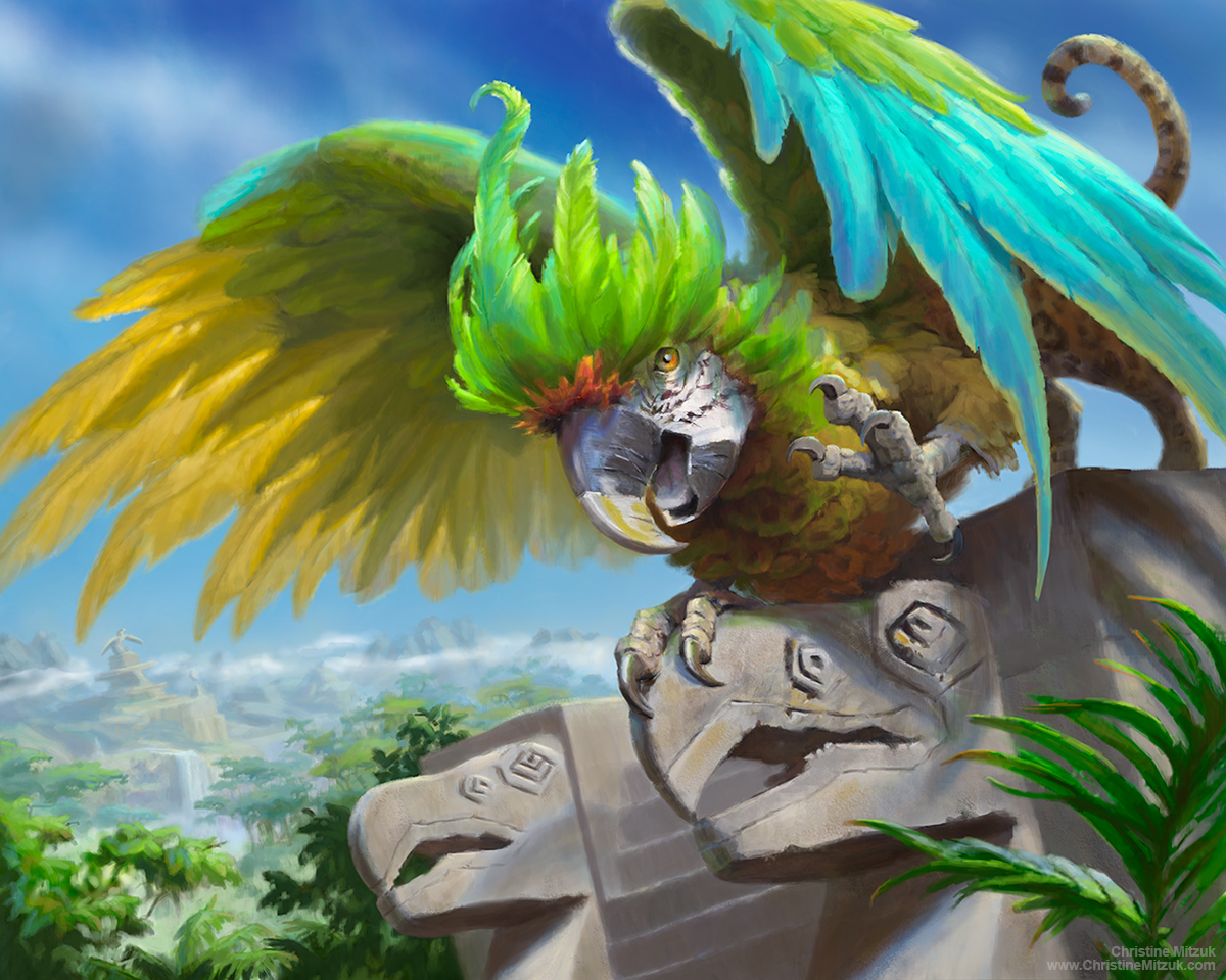Magic the Gathering’s Rivals of Ixalan 2018 release looks like it’s pulling heavily from South American imagery. There’s a beautifully painted Resplendent Griffin by Sam Rowan. Magic the Gathering is one of my target clients so I saw this as an opportunity to dissect a painting done for them and compare it directly to something I created.